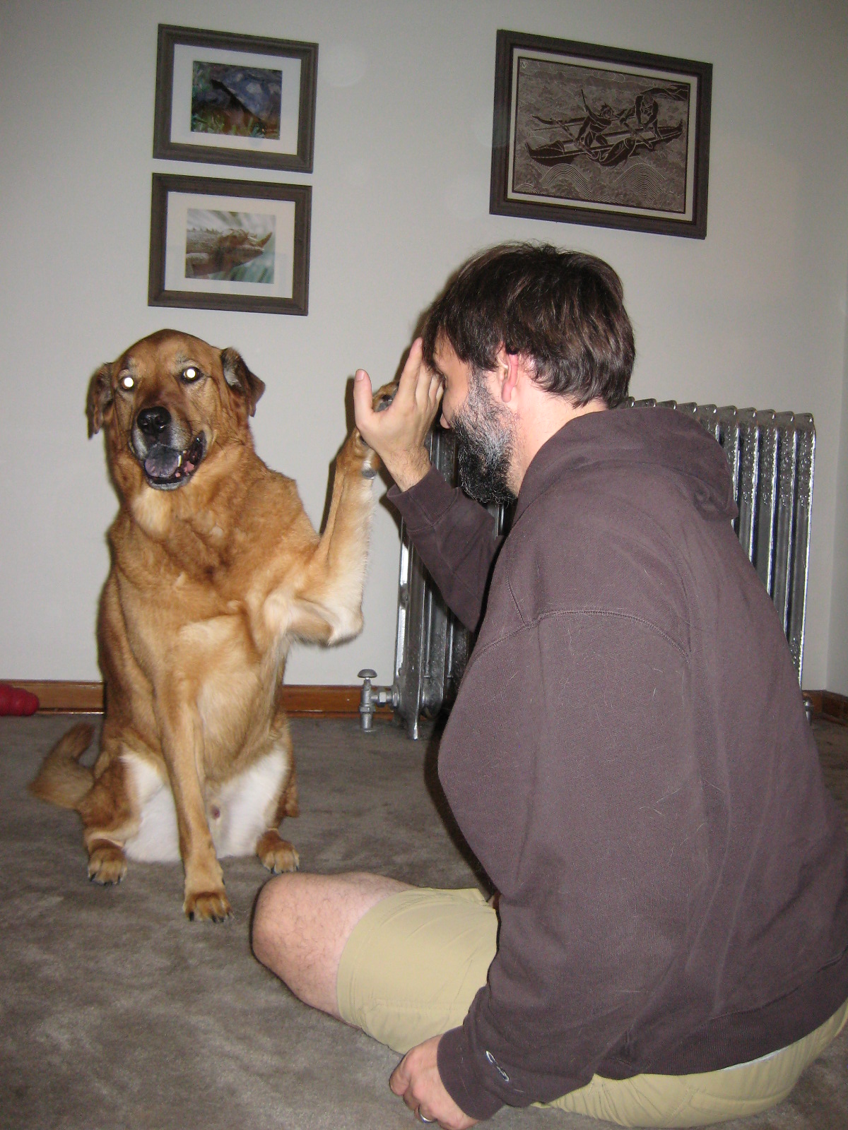 here but this is where I relocated it) in which a dog that's so eager to please lifts her paw to shake with the human carting her off to be vivisected.